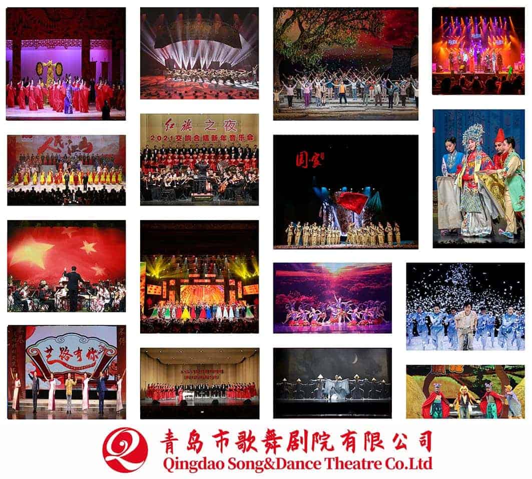 青島市歌舞劇院成立于1960年,是集策劃、編創、演出于一體的演藝實體。劇院陣容齊備、具備較強綜合實力、是山東省具有較高影響力的專業藝術院團。建院以來,累計創作、演出各類劇(節)目千余個,演出萬余場,足跡遍布國內外,享有較高聲譽。劇院先后多次榮獲國家、省市級專業藝術獎項,2010年舞蹈《扇趣》榮獲第九屆全國舞蹈大賽優秀表演獎。2012年山東省藝術節大型舞劇《東廂記》和方言劇《劈柴院傳奇》榮獲優秀劇目獎,2013年由莫言同名小說改編的舞劇《紅高粱》參演第十屆中國藝術節,榮獲“文華大獎”。又先后榮獲第十三屆精神文明建設“五個一工程”優秀作品獎、山東省第十一屆精神文明建設“文藝精品工程”特別獎,第七屆山東省“泰山文藝獎”舞蹈類藝術作品一等獎。2017年舞劇《法顯》榮獲山東省第十二屆精神文明建設“文藝精品工程優秀作品獎”及第十屆山東省“泰山文藝獎”舞蹈類藝術作品一等獎。